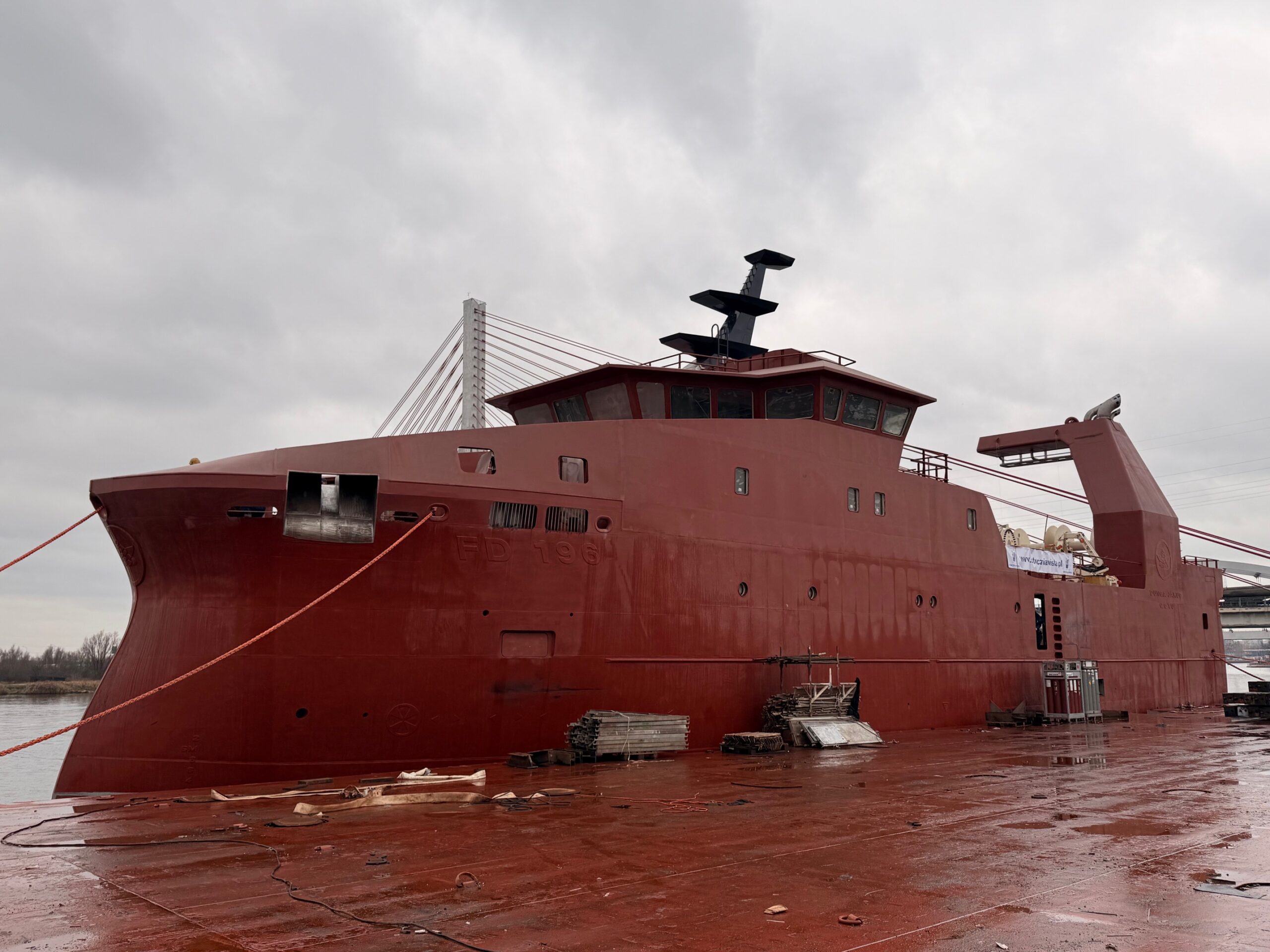 Skrokkurin til frystitrolaran Dunga Jákup M/tr, sum er bygdur á Stozcnia Wisla skipasmiðjuni í Gdansk í Póllandi, varð sjósettur og yvirtikin í dag.![]()