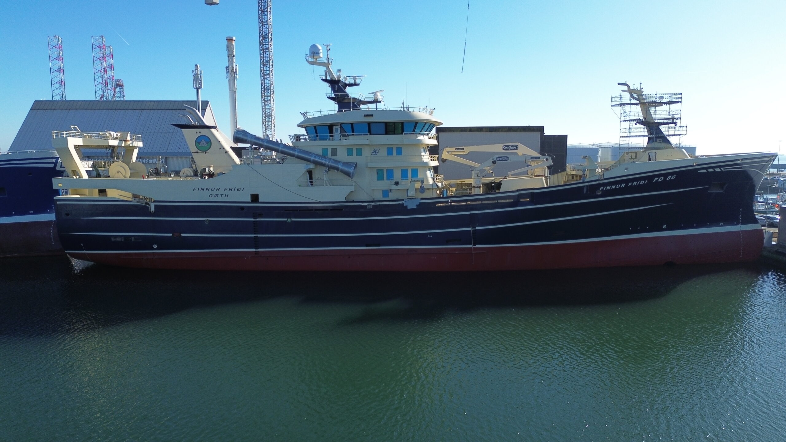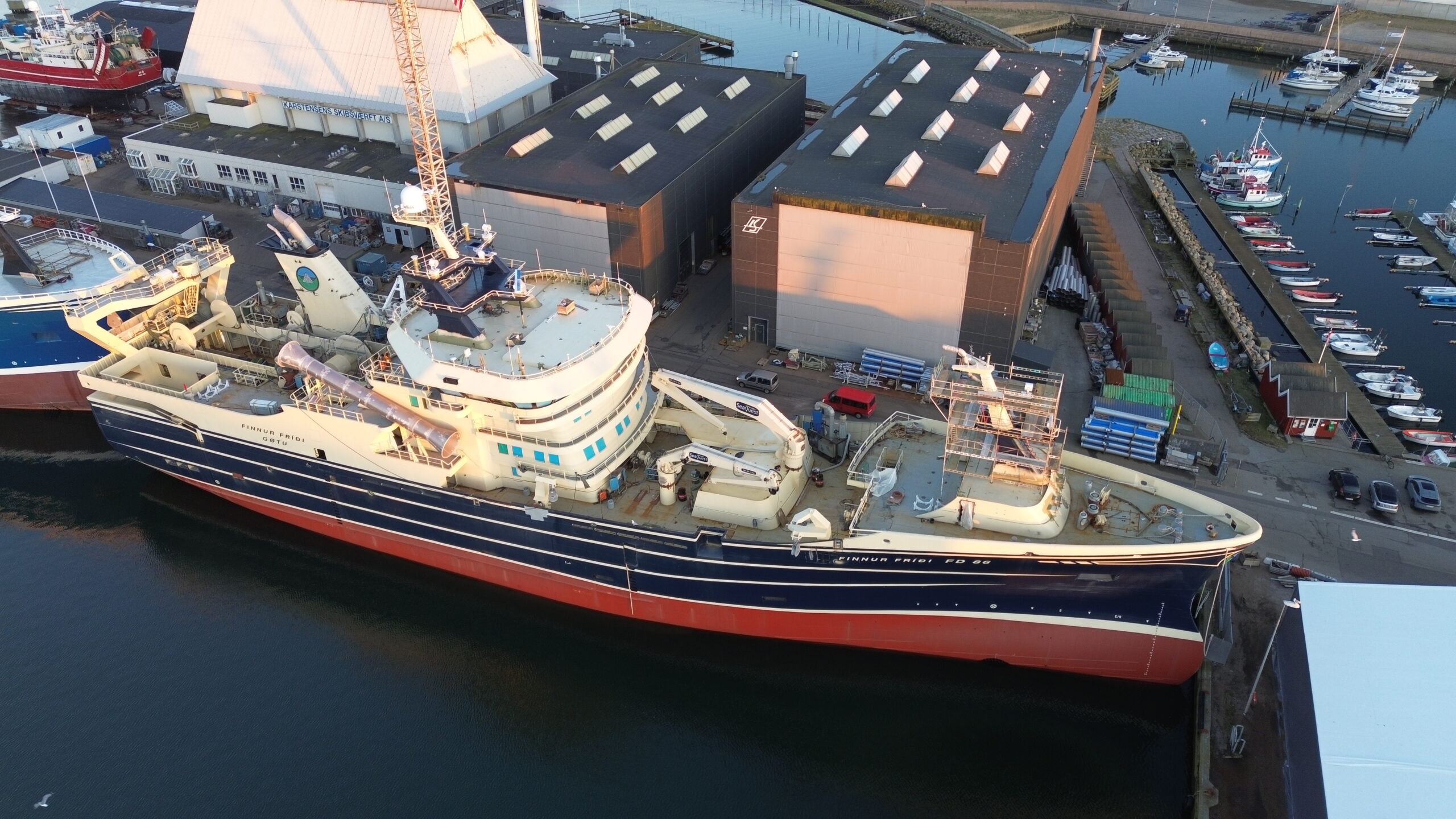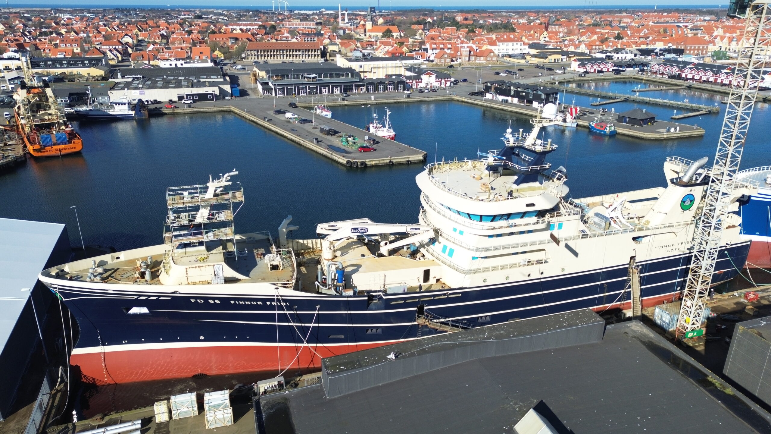 Vit hava fingið myndir av nýggja Finnur Fríða, frá okkara eftirlitsmanni í Skagen. Tær eru tiknar við dronu í góðveðrinum. Sum sæst á myndunum er skipið ikki heilt liðugt enn. Væntandi verður skipið í Føroyum einaferð í mai.