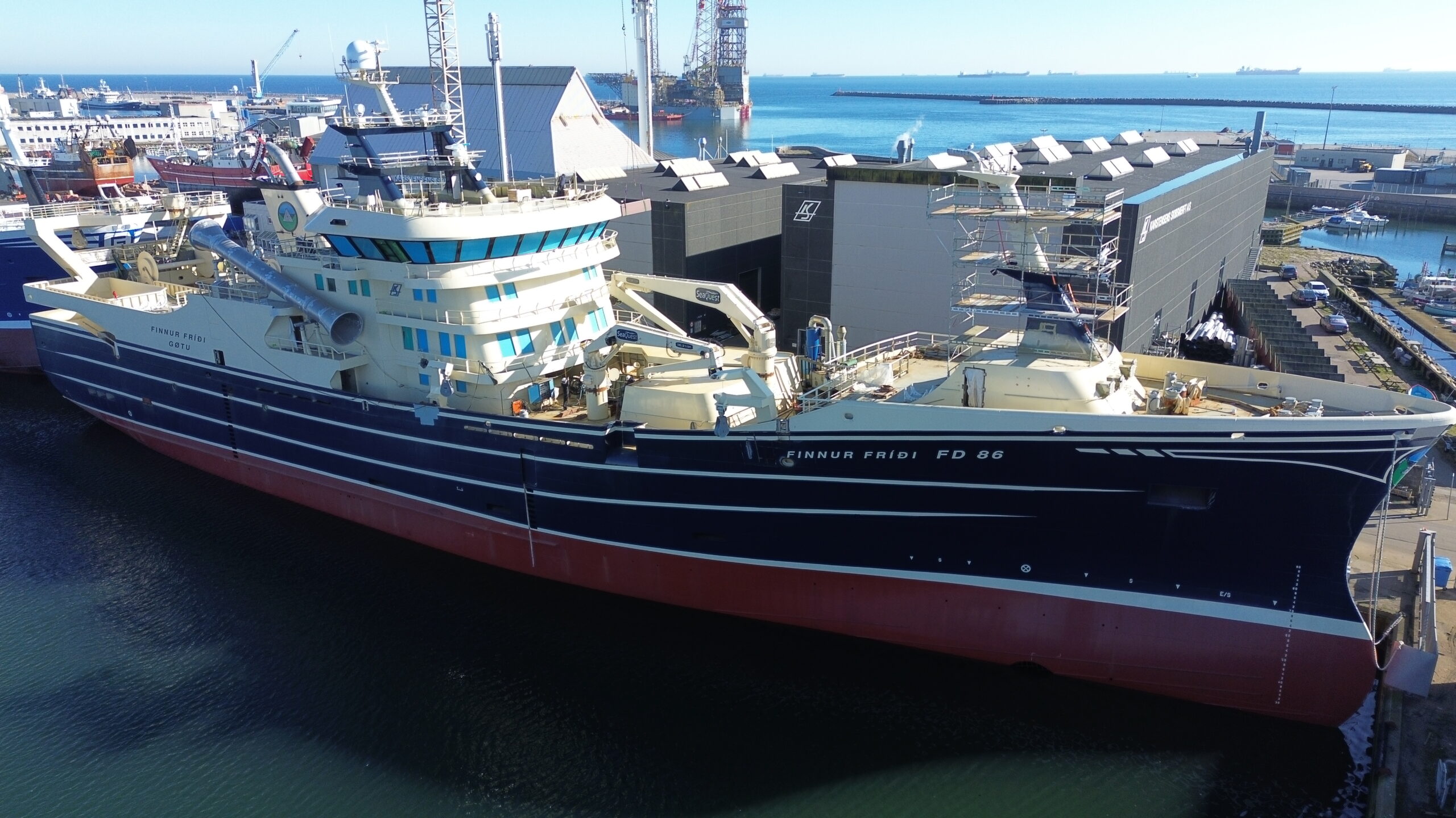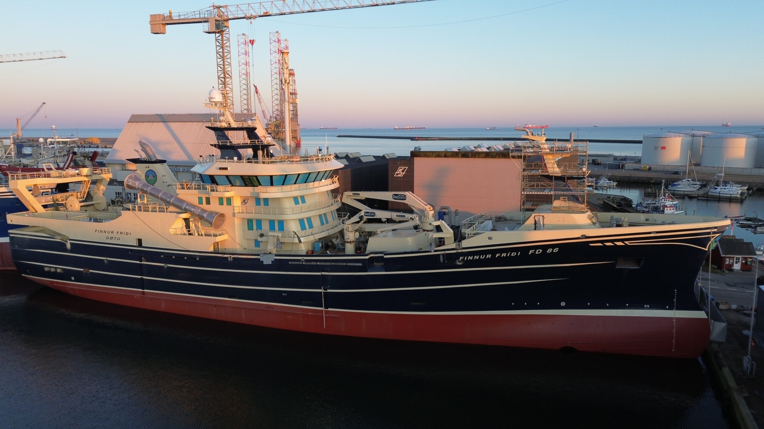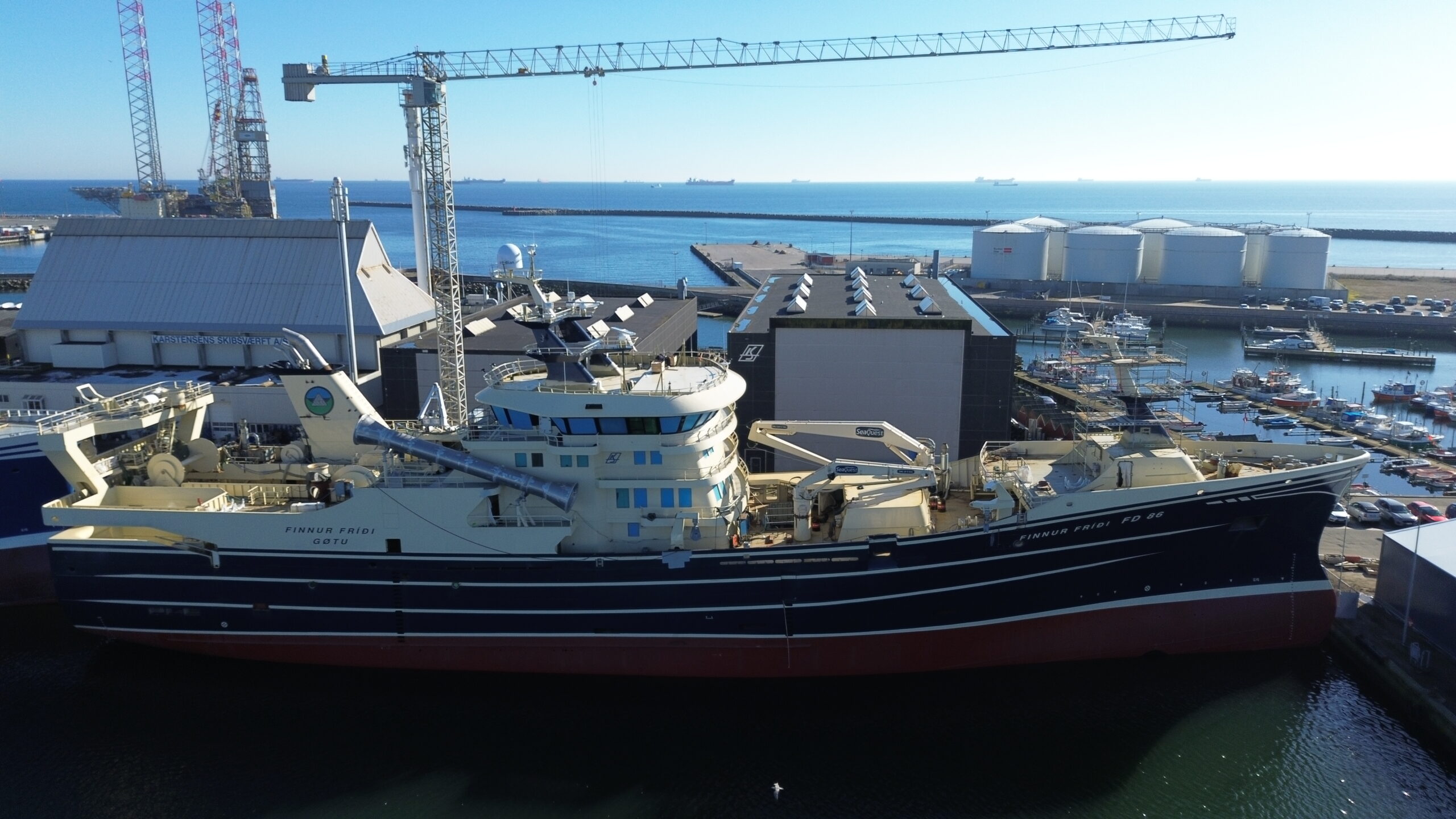 Vit hava fingið myndir av nýggja Finnur Fríða, frá okkara eftirlitsmanni í Skagen. Tær eru tiknar við dronu í góðveðrinum. Sum sæst á myndunum er skipið ikki heilt liðugt enn. Væntandi verður skipið í Føroyum einaferð í mai.